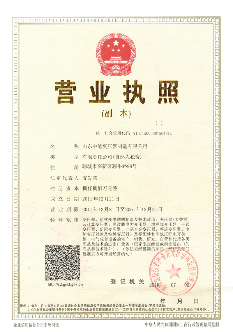 荣誉资质_乐山中能变压器厂家